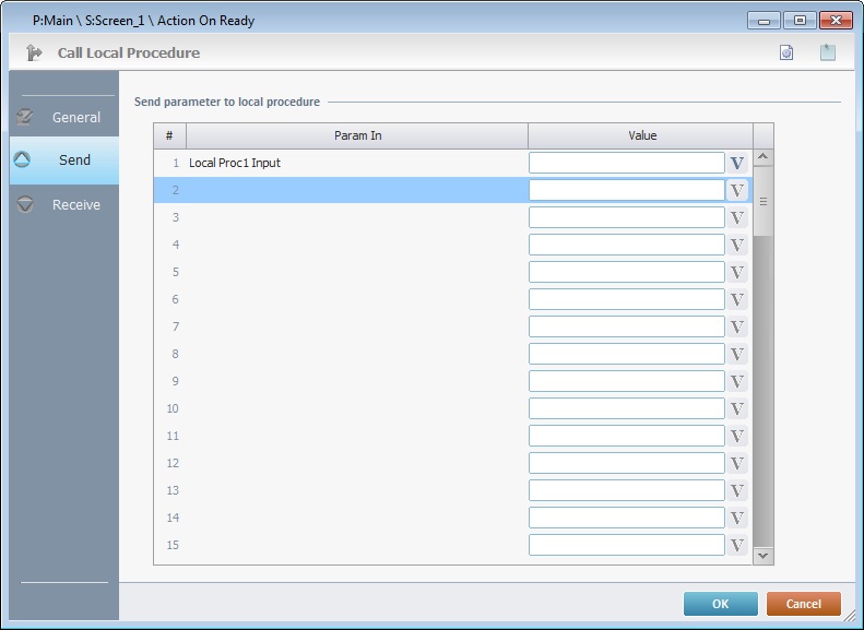 Define the local variable(s), within the local procedure, that receive data from outside. See Working with the Variable Processes Group.