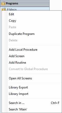 a. In the "Programs" module, right-click the program that will include the local procedure.