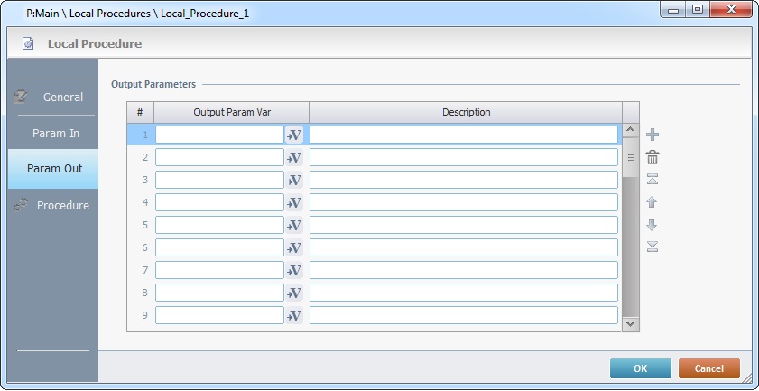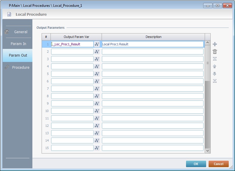 Use this column to describe the output parameter - the description will be used to identify the local procedure's output parameter(s) in a "Call Local Procedure" process.