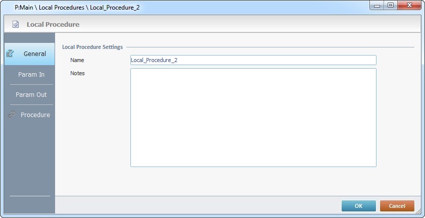 3. In the "General" tab (open by default), enter a name for the newly created "Local Procedure" in the "Name" box. This name will be displayed in the tree view of the "Programs" module.