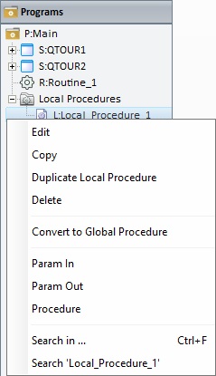 b. In the "Programs" module, right-click the "Local Procedure's" general entry.