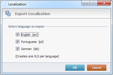 4. The next window displays the language options that were specified in the "Localization" tab. Check the language(s) you want to export.