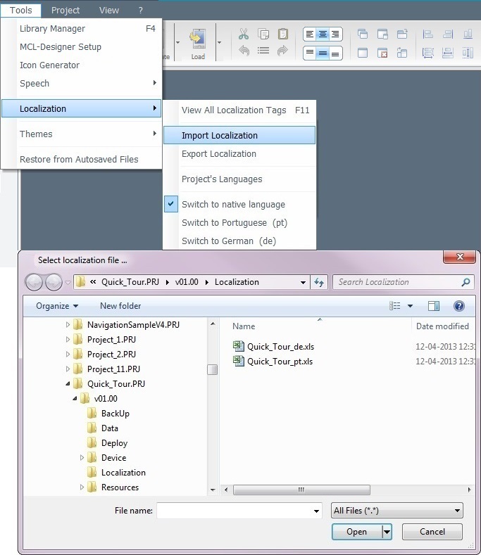 2. Mouse over the "Localization" option and, then, select "Import Localization".