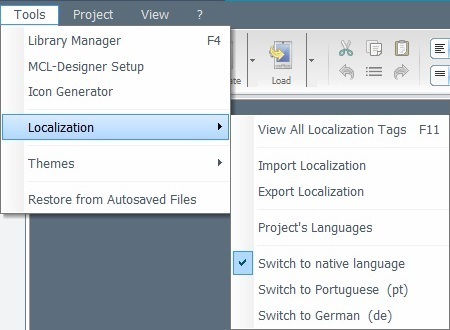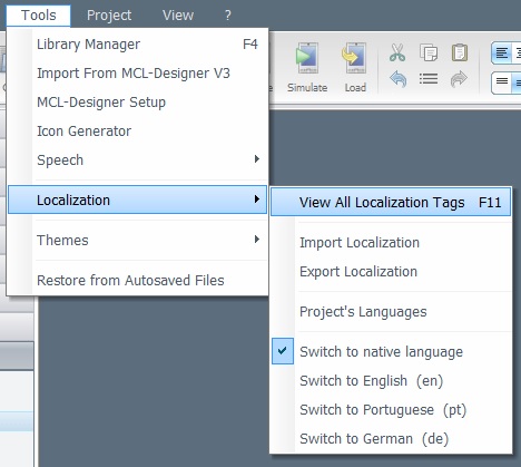 MCL-Designer allows you to export/import the localization file(s) used within a project but it is also possible to simply export the localization tags associated to the element being exported.