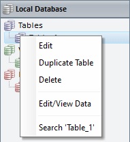 If you right-click an added table,you have access to the following options: