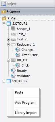 The programs, as well as the program elements are displayed in a tree view located in the "Programs Module". Whenever there is an addition to the project or program, it is displayed in that tree view.
