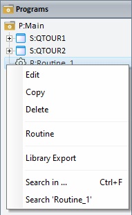 Right-clicking a Routine represented in the tree view (within the "Program" module) provides access to a menu with the following options: