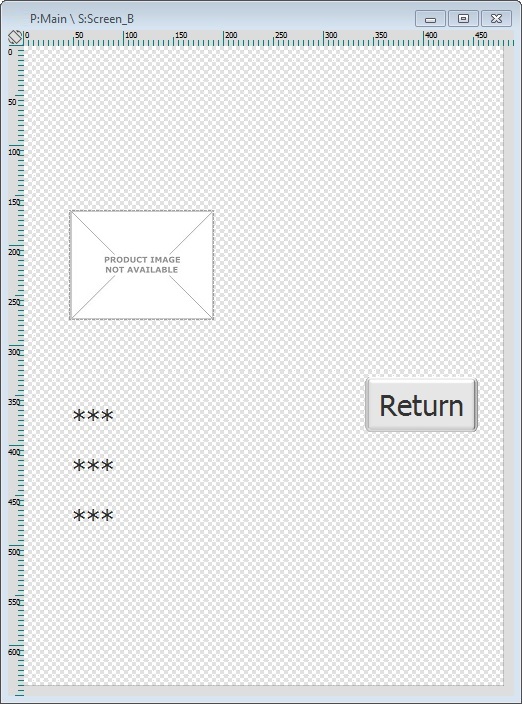 b. Add the necessary controls. (Ex: The screen includes a Display Image, a few Display Text controls displaying variable content and a Button to return to "Screen_A" which MUST include a "Go to: <Exit>" process in its "Actions" tab.)