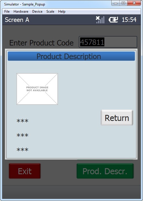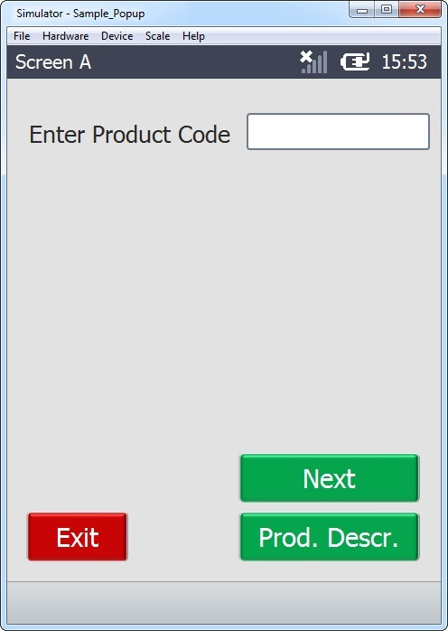 The purpose is to enter a product code and view the corresponding product description as a pop up.