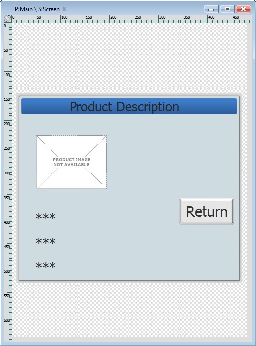 b. The Button "Prod. Descr." is clicked (the "GoSub S: Screen_B" process calls "Screen_B").
