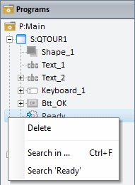 Right-clicking a control displayed in the Tree View ("Programs" module) opens the following menu: