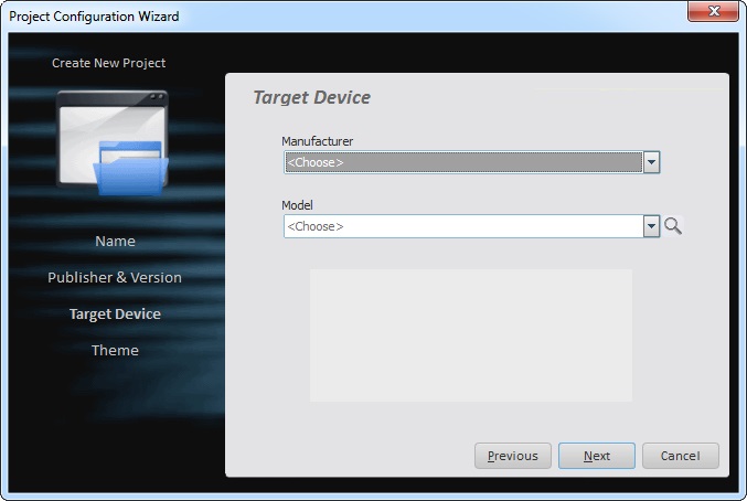 The “Target Device” options can be changed, at any time, to another specific manufacturer and model.