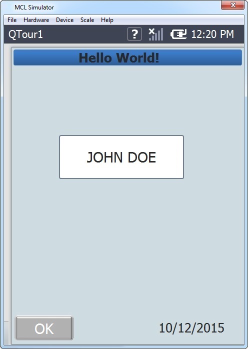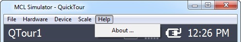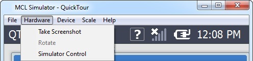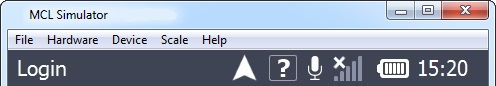 •The simulator window includes the actual screen that is viewed by the operator, on the device, and an options bar which is not viewed in the device's screen. The simulator's options bar includes the following menus: