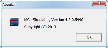 If required, click "Help" and, then, "About..." to check the current Simulator version. The resulting window displays the following info: