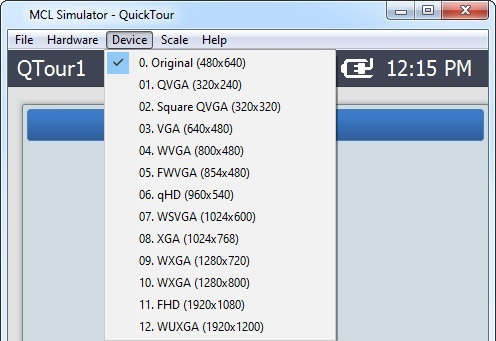 If required, click "Device" to select the appropriate screen resolution for the simulation.