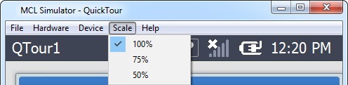 By default, the dimension of the MCL-Simulator window is the same as the one defined for the project being simulated (in the "Zoom" section of the Icon Shortcut Bar).