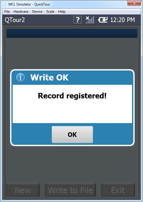 b. Write this name in a file by clicking "Write to File". This leads to a message box displayed in this screen.