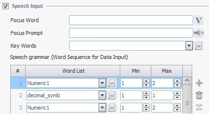 When entering data in the "Speech Grammar" table, you can use the editing bar to the right to add (