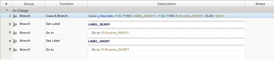 The corresponding default values for these key codes ("EN" for "<ENTER>", "E1" for "<ENTER1>", "E2" for "<ENTER2>" and so on) are stored in the default local variable "L_Keycode". This variable is associated to another default local variable - L_Entry_Type - which stores the type of input ("VO" for speech input, "KB" for keyboard input and the symbology" of a barcode input). The "L_Keycode" variable will only receive data if the entry type is speech input (meaning, with a "VO" value in the "L_Entry_Type" variable).
