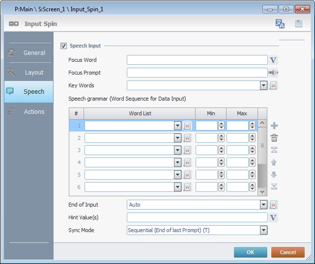 2. In the "Speech" tab of the "Input Spin" (in the "End of Input" option), select the "<Validation_Words>" app word list.