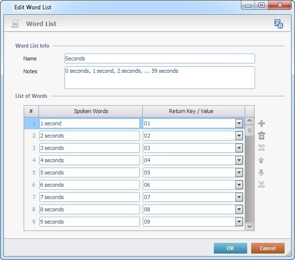 If you use more than one word list, remember that this is a word sequence, meaning, you have to order your word list selection according to the intended speech input sequence. Ex: For a word sequence such as "Code 5 2 Read", you have to do the following selection: 1st - the word list that includes the word "Code".(List A) 2nd - the word list that includes the numeric units "5" and "2" (List B) 3rd - the word list that includes the word "Read". (List C) If you were to select List B first, then, List C and, then, List A, you would be creating the following speech input sequence - "5 2 Read Code".