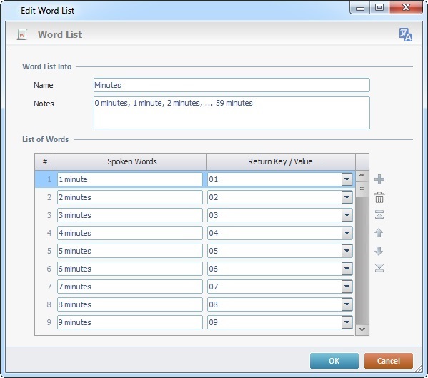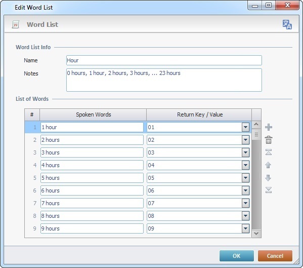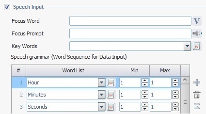 When entering data in the "Speech Grammar" table, you can use the editing bar to the right to add (