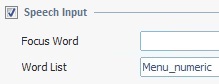 Select an App Word List from the drop-down list or click This implies the previous creation of an App Word List with the spoken words that represent the buttons/values contained in "Menu Text" control. |