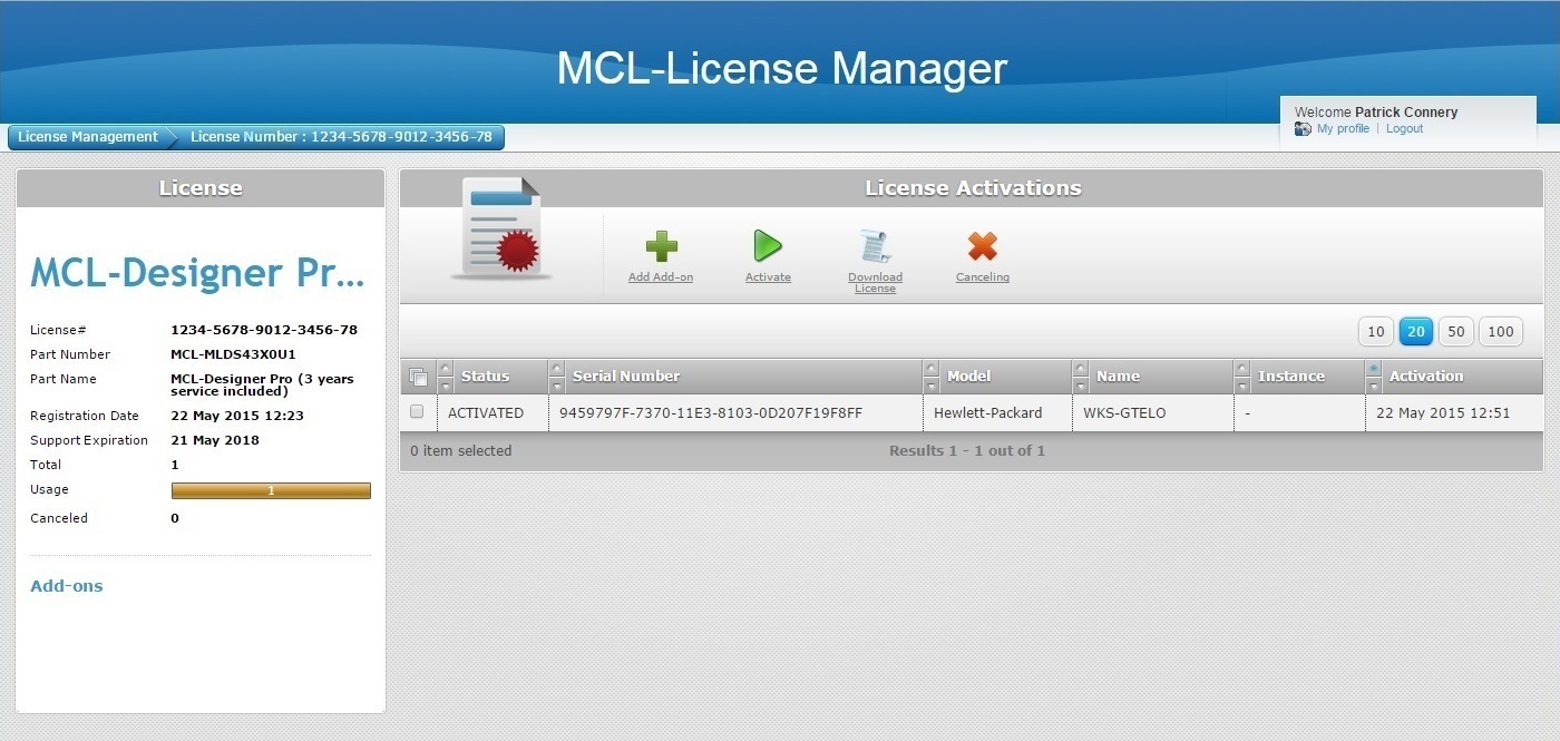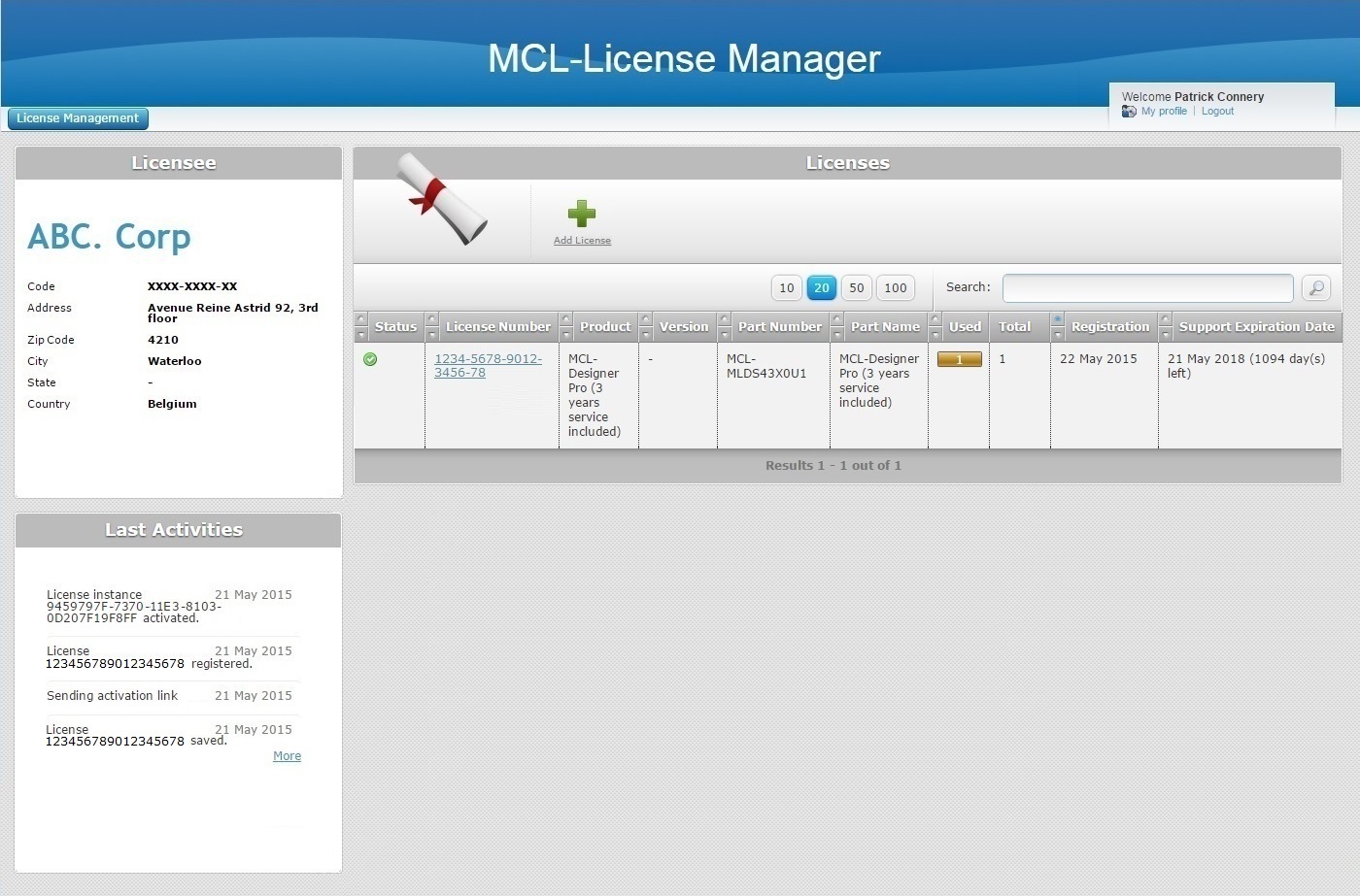 1. Log in to your MCL-License Manager account ("Licenses" page).