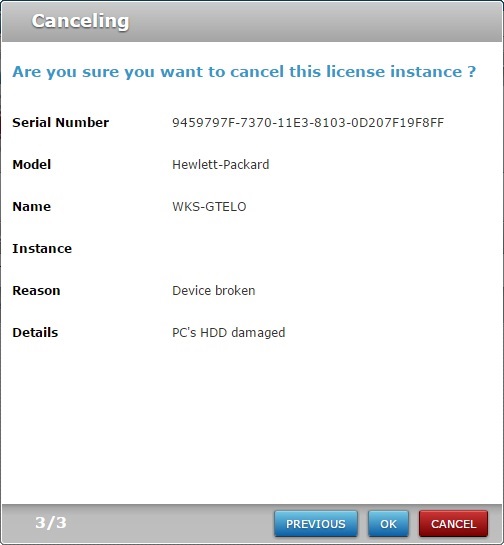 •the instance field refers to the number of times that the selected license has been canceled/reactivated.