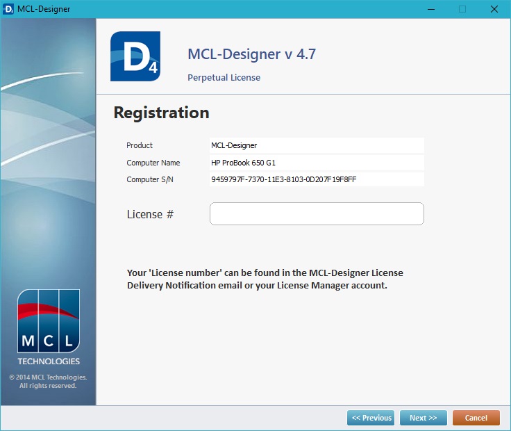 15. Enter the MCL-Designer License's number - this information is in the email you receive after every MCL-Designer license purchase.