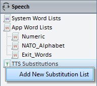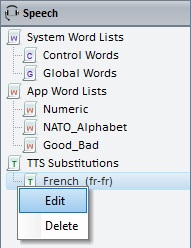 1. In the "Speech" module, right-click the TTS substitutions list you want to edit.