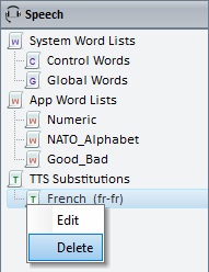 1. In the "Speech" module, right-click the TTS substitutions list you want to delete.