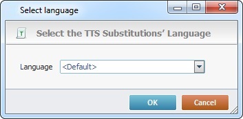 The "<Default>" option represents the TTS language that is defined in the speech profile of the operator that logged in on the speech application.