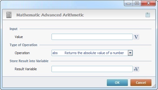 The Advanced Arithmetic process is used to perform more complex calculations (ex: the rounding of a number, calculating the square root or the natural logarithm of a number, etc).