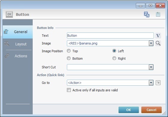 In a "Button" control: The path to the resource's location ("banana.png") is referred with a relative path. |