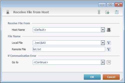 In a "Receive File from Host" process: The target for the file ("list.txt") is referred with the use of an alias. |