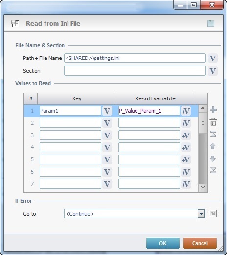 In a "Read from INI File" process: The path of the file to be read ("settings.ini") is referred with an alias (the "SHARED" folder). |