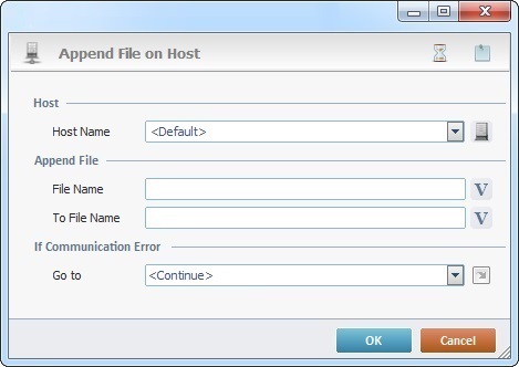 The Append File on Host process is used to append a file located in a specific Host server into another one.