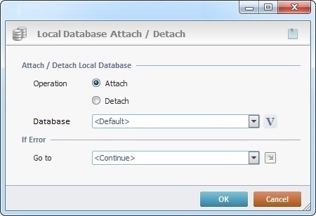 When you add a process, you are required to define its settings. This occurs in the process's properties window which is displayed automatically after having added the Local Database Attach/Detach process.