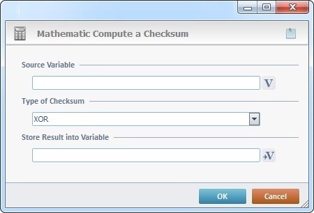 The Checksum process is used to compute the checksum of the intended value. The result is stored in a variable.