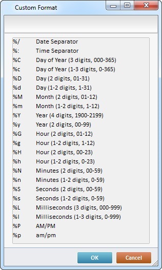 icon, which appears in the properties window of each Date process, represents a list of syntaxes to aid in the writing of date formats.