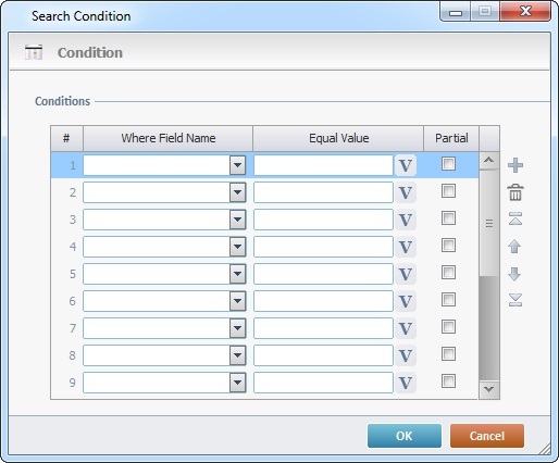 Specify the field name to be searched through a "Where" condition from the drop-down list. |