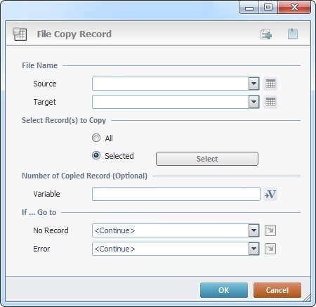 The File Copy Record process is used to copy records from a source data file to a target data file.