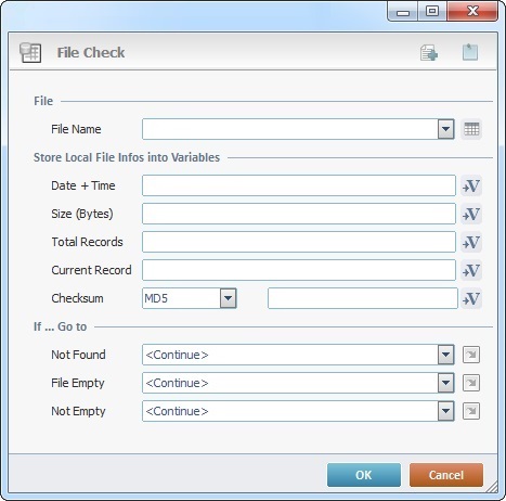 The File Check process is used to check the existence of a specific file and to retrieve its properties.