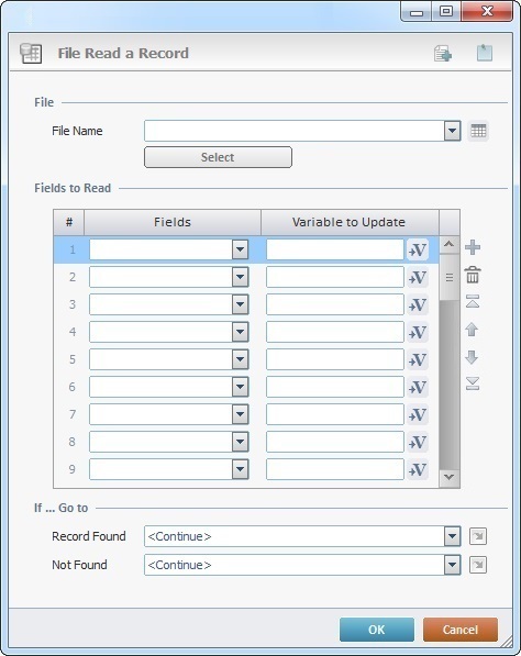 The File Read a Record process is used to read a record from a data file.