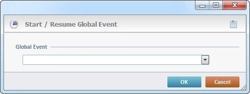 The Start/Resume Global Event process is used to start the timer of the selected global event or to resume the timer of a previously paused global event.