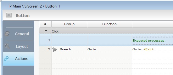 The added process is displayed in the corresponding "Actions" tab or "Process" window.