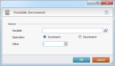 Select the operation you require: Increment - check this if you want the value that you define below to be an increment. Decrement - check this option so that the value defined below is a decrement. |