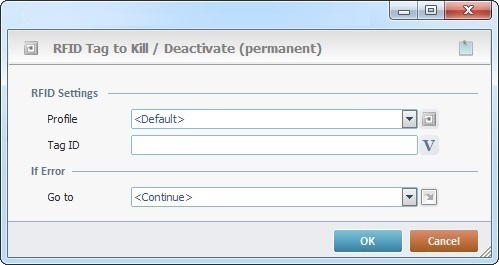 Define the tag to be permanently deactivated. Either enter its ID or click |