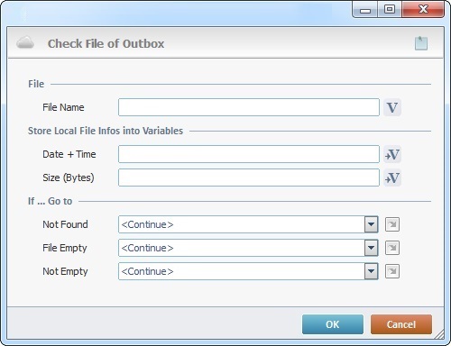 The Outbox File Check process is used to check for a specific file present in the device's Outbox (which is a specific area included in the device's Filebox).